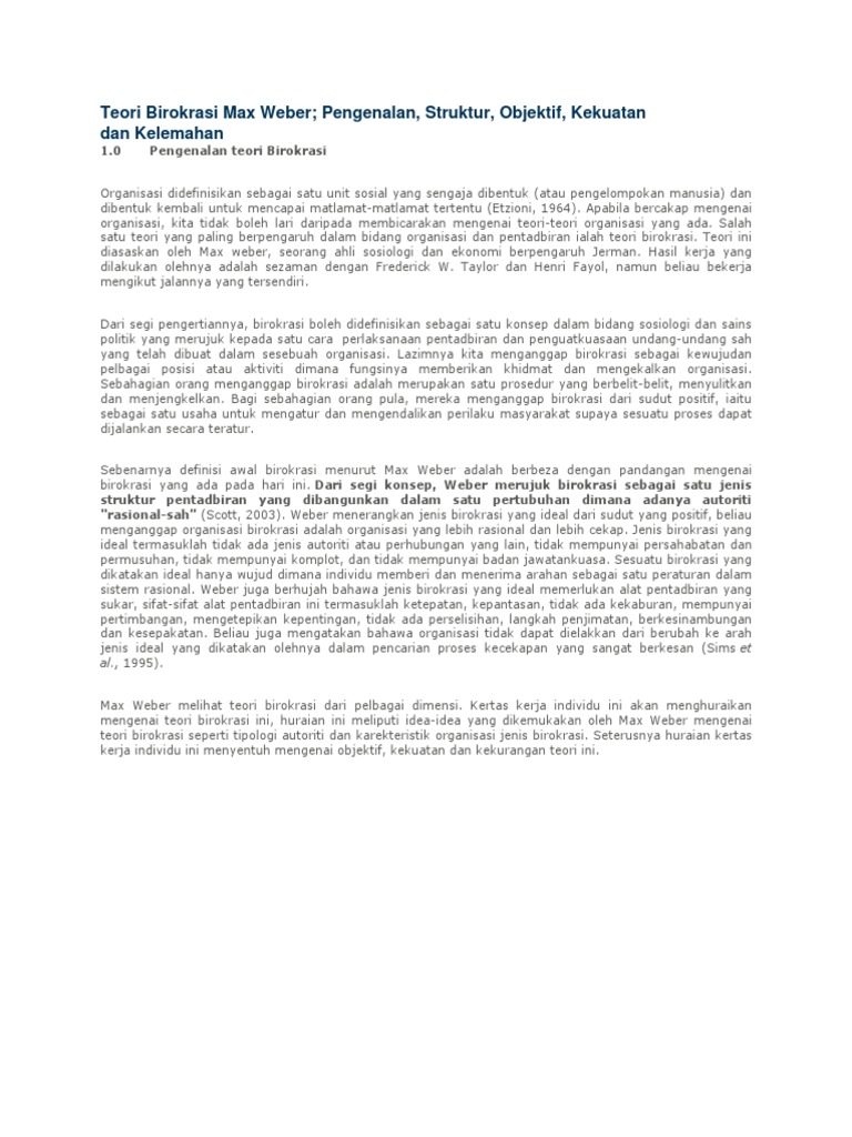 Kelebihan sistem birokrasi max weber: Dia menggambarkan tipe organisasi tersebut dengan maksud menjadikannya sebagai landasan untuk berteori tentang bagaimana pekerjaan dapat dilakukan dalam kelompok besar. 0510020020 jurusan ilmu komunikasi fakultas ilmu sosial universitas brawijaya abstract every organization has to know organization communication s theory. Robbins dan coulter (2009) merujuk ciri ini sebagai penutupsecara ringkasnya dapatlah disimpulkan bahawa teori birokrasi yang diperkenalkan oleh max weber ini telah memberi kesan yang besar. Seperti yang diuraikan dalam teori.